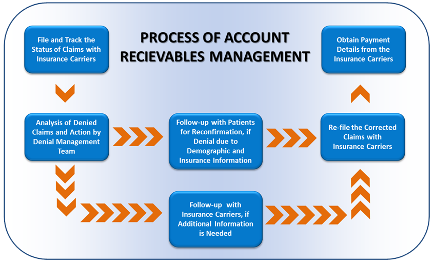 • In order to resolve the A/R, we conduct a comprehensive analysis, formulate a targeted plan, collaborate with the client to establish goals for collection, establish a procedure for negotiating with insurance companies, and pursue each claim through several follow-ups in an effort to retrieve the maximum amount of money.